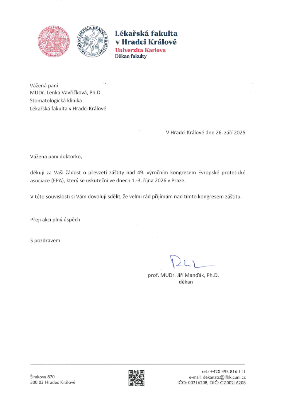 Dean of the Faculty of Medicine in Hradec Králové, Charles University